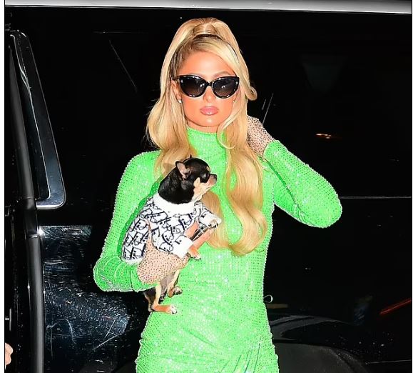 Paris Hilton dukej magjepsëse me një fustan të gjelbërt.