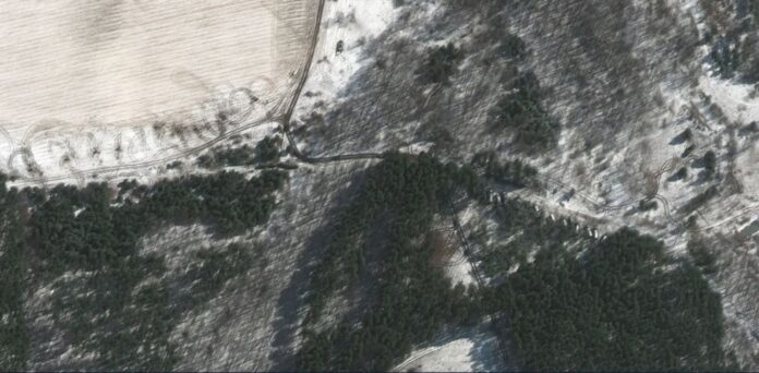 Imazhet tregojnë gjithashtu artileri të tërhequr dhe automjete të tjera duke u strehuar në një vend të rrallë pemësh afër Lubyanka.