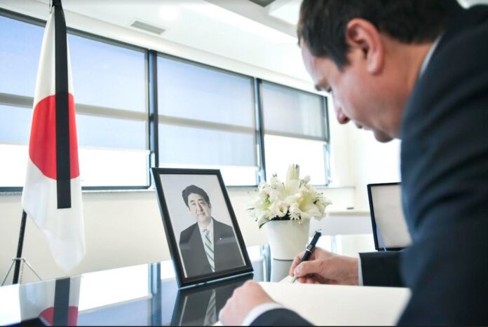 Kryeministri Albin Kurti ka shkruar në librin e zisë të hapur në Ambasadën e Japonisë në Kosovë, ku ka shprehur respektin dhe nderimin për ish-kryeministrin e Japonisë, Shinzo Abe, i cili u vra ditë më parë.