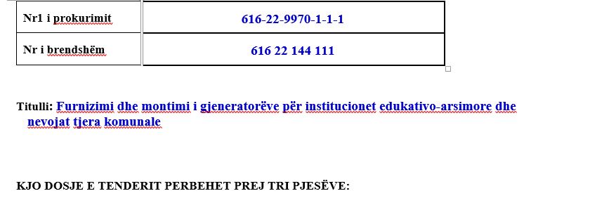 “Furnizimi dhe montimi i gjeneratorëve për institucionet edukativo-arsimore dhe nevojat tjera komunale”. Kështu quhet thirra e komunës, të cilën pret ta finalizojë gjatë muajit tetor.
