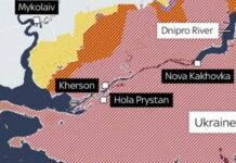 Një hartë e publikuar nga Sky News tregon përparimet e Ukrainës në perëndim të lumit Dnipro.