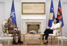 Presidentja e Kosovës, Vjosa Osmani, ka takuar komandantin e ri të KFOR-it, gjeneralmajor Angelo Michele Ristuccia.