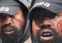 Dhe Kanye West u shfaq me shenja të kuqe misterioze në fytyrën e tij ndërsa...